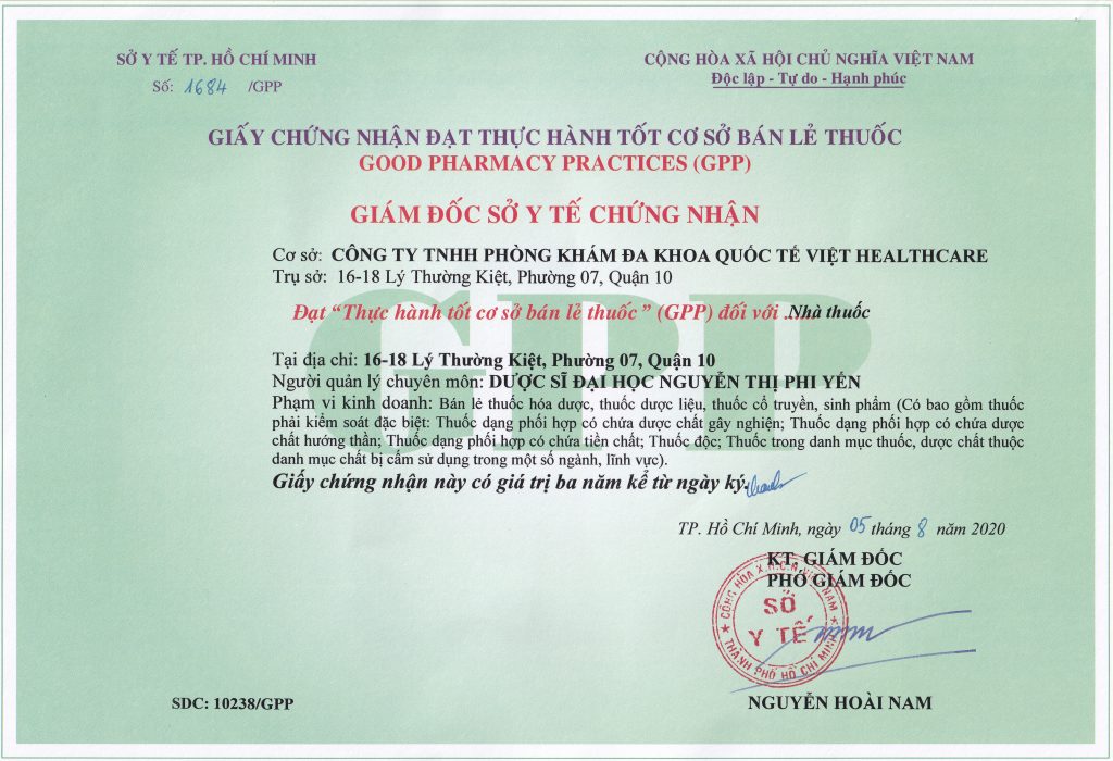 Giấy Chứng Nhận đạt thực hành tốt cơ sở bán lẻ thuốc